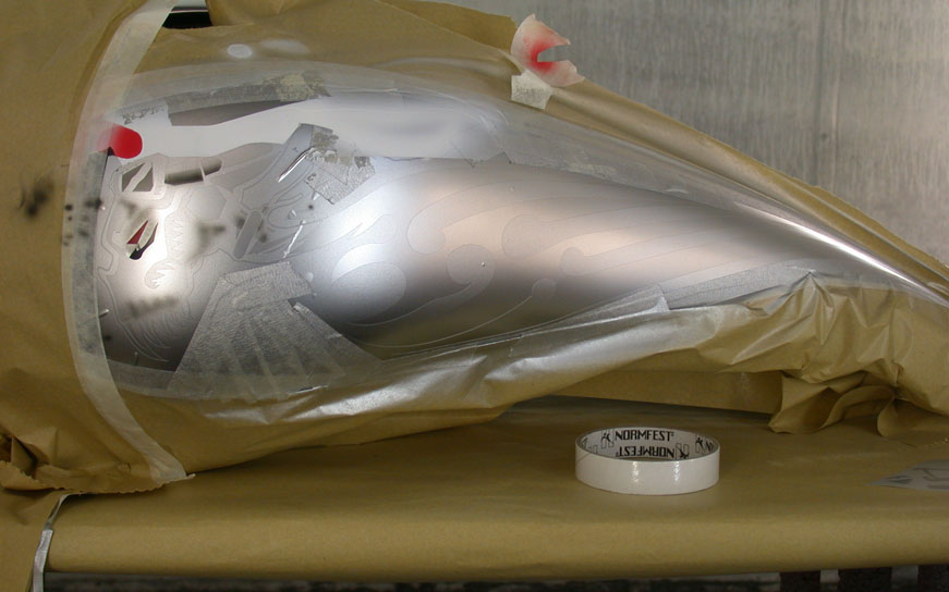 Auch die Teillackierung von abgeklebten Flächen auf Chromuntergründen ist garantiert möglich.